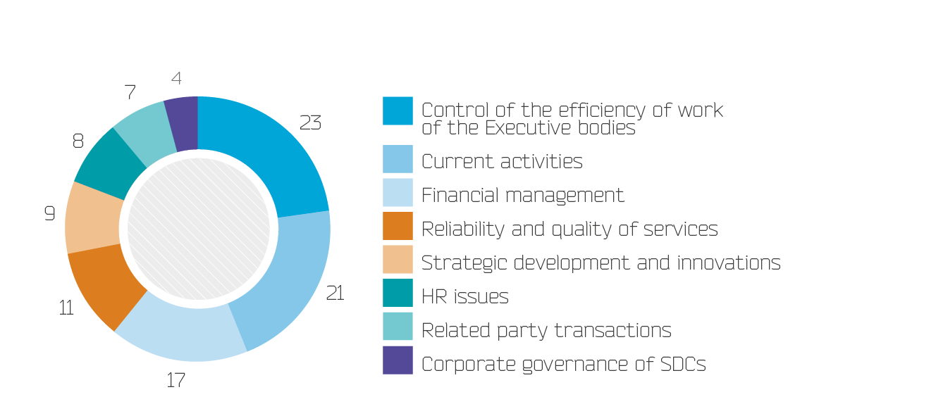 The Committee has prepared recommendations to the Board of Directors for decision making on the definition of the Company’s priorities: improvement of the internal control and risk management system, development of the internal audit function, approval of the risk management Policy of Lenenergo in the new edition and the Policy of internal audit of Lenenergo, as well as the register of the Company’s key operational risks with the consolidation of their respective owners.