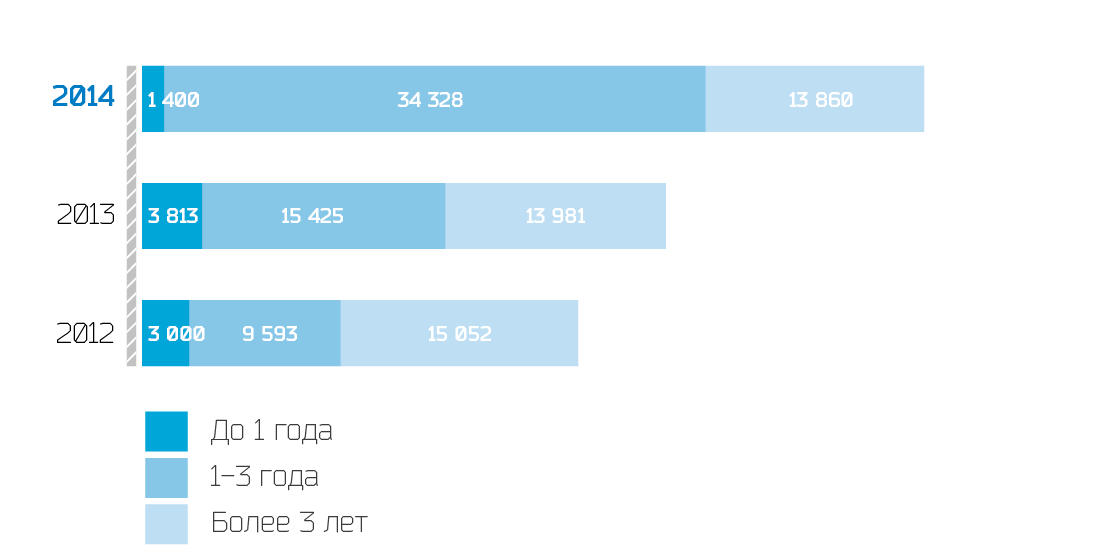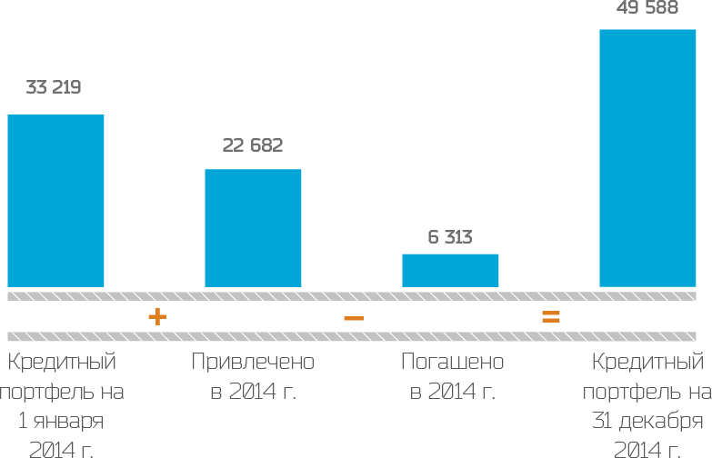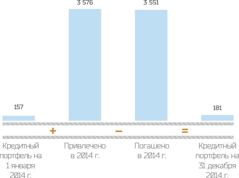 Увеличение кредитного портфеля в 2014 г. произошло за счет роста суммы заемных ресурсов, привлеченных на финансирование инвестиционной деятельности.