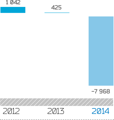 Прибыль до налогообложения составила 8 793 млн руб., что на 10 238 млн руб. ниже, чем в 2013 г.