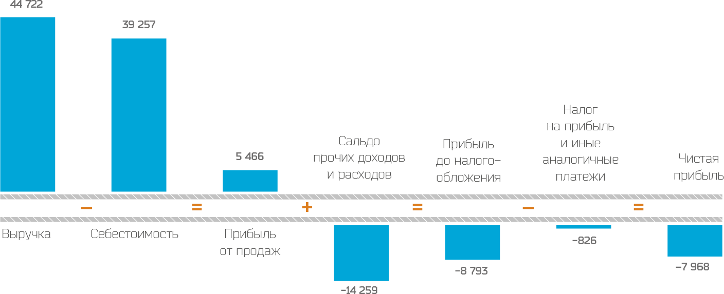 Чистая прибыль | млн руб. | -7 968 | -6 121 | 5 443 | 7 796 | 11 212 | 13 278 | 266,6 | с. 2400 (ф.2) |