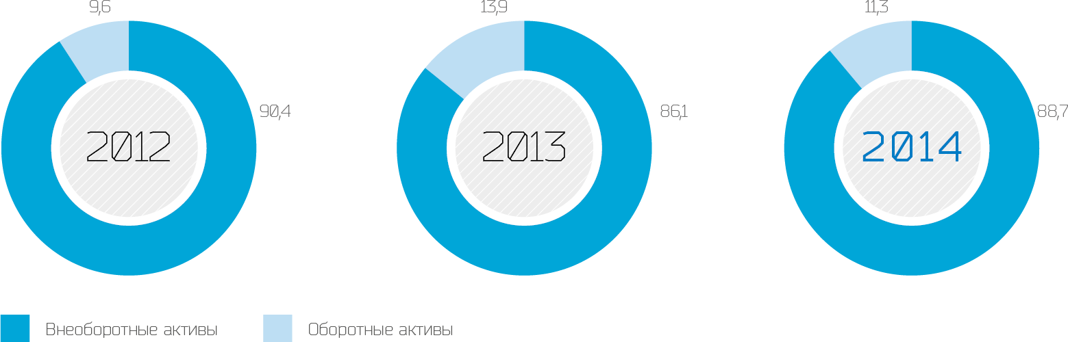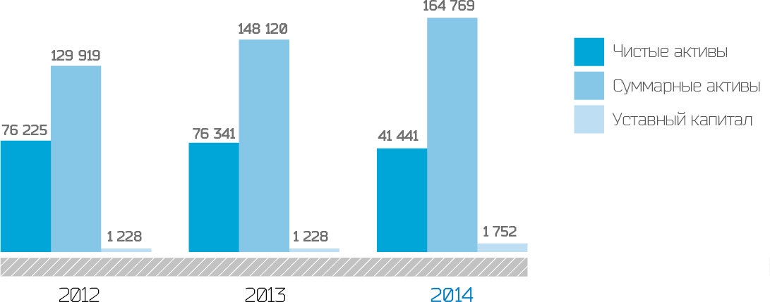 Валюта баланса (то есть сумма активов, находящихся в распоряжении Общества) на конец 2014 г. составила 164 769 млн руб. По сравнению с балансом на 31 декабря 2013 г. сумма имущества Общества и источников его формирования возросла на 16 650 млн руб., или на 11,2 %.