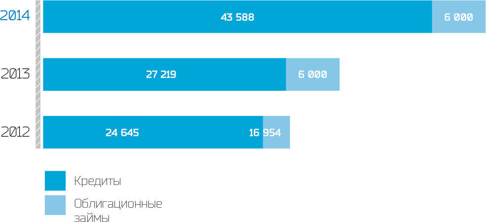 С целью финансирования инвестиционной программы и рефинансирования долга компания использует все доступные инструменты привлечения средств: кредиты банков и облигации (корпоративные и биржевые). Решения о привлечении дополнительных финансовых ресурсов базируются на принципе обеспечения меньшей стоимости фондирования при увеличении срока заимствования.