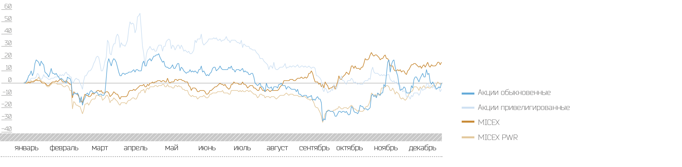За прошедший год произошло снижение котировок акций компаний, входящих в группу ОАО «Россети». Снижение капитализации распределительных сетевых компаний составило в среднем 1,16 %. В отдельных случаях зафиксировано падение до 51 %. Отраслевой индекс MICEX PWR (ММВБ энергетика) потерял за отчетный период 22,75 %.